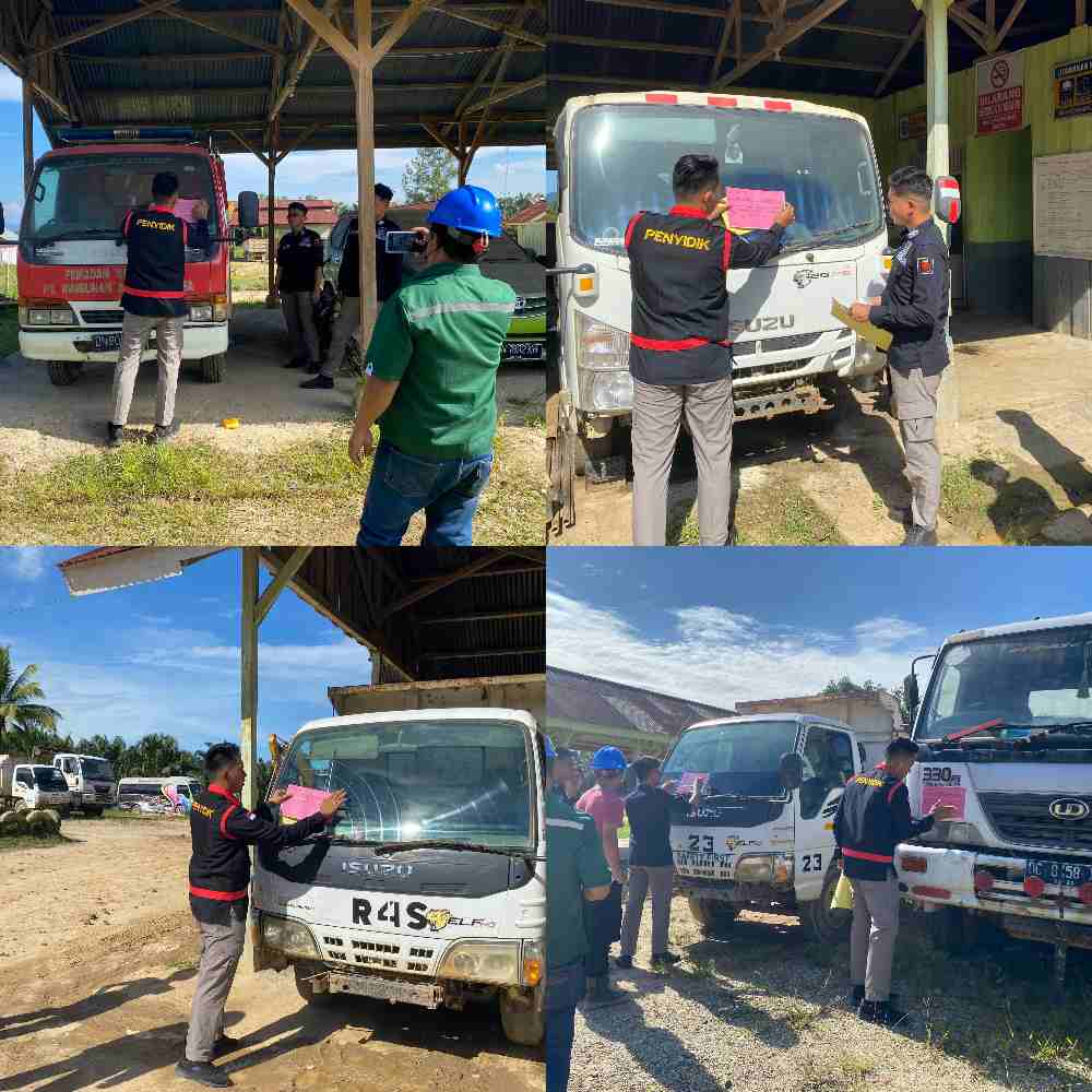 “Tiga belas (13) kendaraan yang di sita diantaranya 7 unit dump truck, 1 unit fire truck, 1 unit traktor, 1 unit self loader truck, 1 unit excavator, 1 unit light truck, dan 1 unit Toyota Hilux double cabin,”