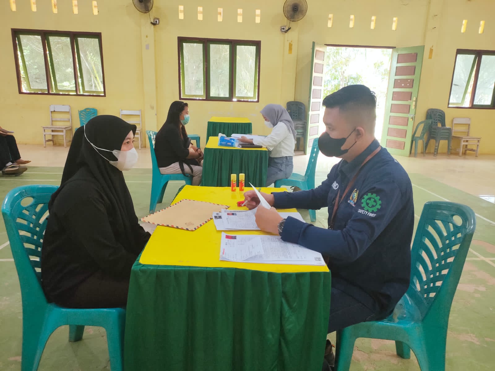 Kali ini, Dua orang staf HRD dilibatkan dalam perekrutan, mereka mewawancarai satu persatu calon tenaga kerja baik pria maupun wanita, dan kegiatan Job fair berjalan secara tertib dan aman.