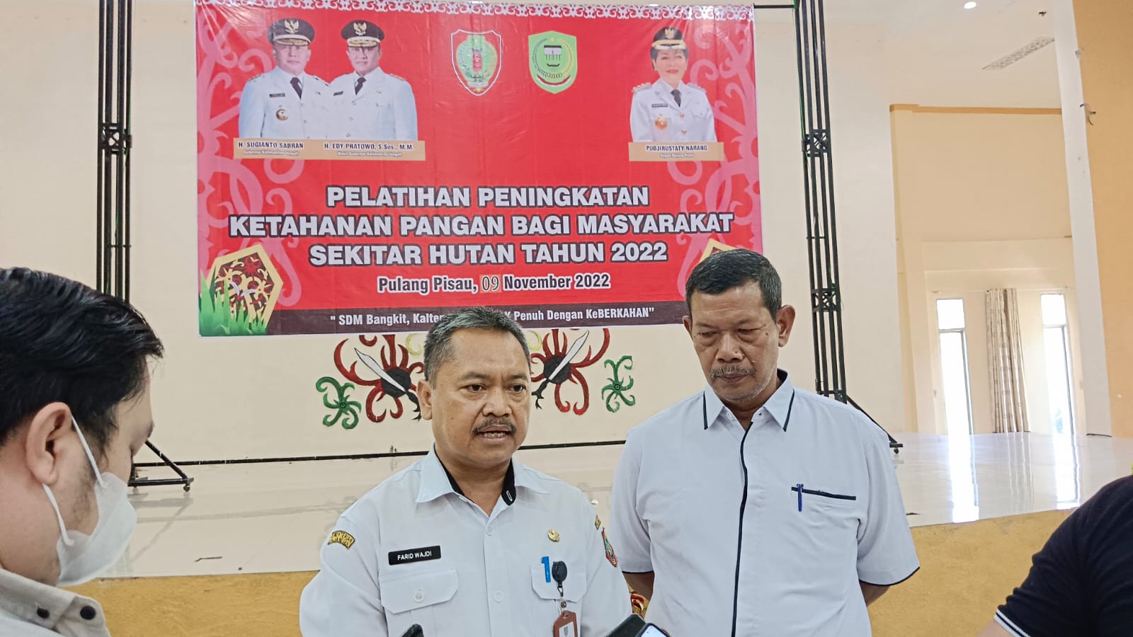 Kegiatan yang disebut Pelatihan Peningkatan Ketahanan Pangan bagi Masyarakat Sekitar Hutan itu bertempat di Aula Bappedalitbang Kabupaten Pulang Pisau, Rabu (09/11/2022) dibuka secara resmi oleh Staf Ahli Gubernur bidang Ekonomi, Keuangan dan Pembangunan, Yuas Elko dihadiri Plt. Kepala Disnakertrans Provinsi Kalteng, Farid Wajdi, Bupati Pulang Pisau, Pudji Rustaty Narang, Kepala OPD serta peserta pelatihan.