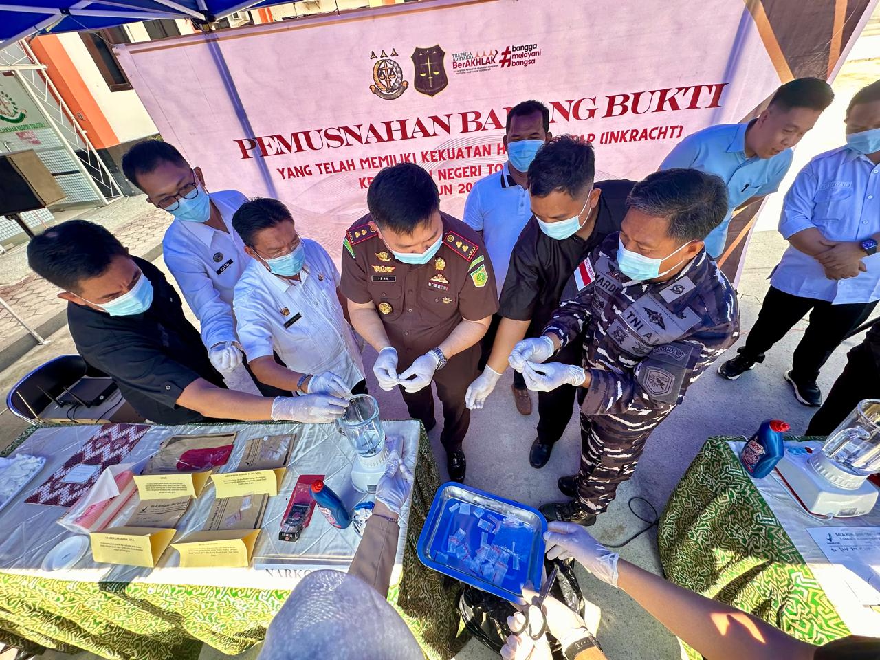 “Selain mengurangi beban penyimpanan, pemusnahan juga mencegah terjadinya penyalahgunaan barang bukti dan rampasan, dan pemusnahan ini menjadi bentuk transparansi penegakan hukum,” jelasnya.