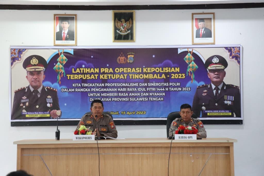 Tolitoli, Sulteng | Kabartoday.id – Dalam Rangka menyambut Hari raya Idul Fitri 1444 H / 2023 M, Polres Tolitoli menggelar Latihan Pra Ops Ketupat Tinombala 2023, yang dilaksanakan di Gedung Jananuraga Polres Tolitoli, Sabtu (15/03/2023).