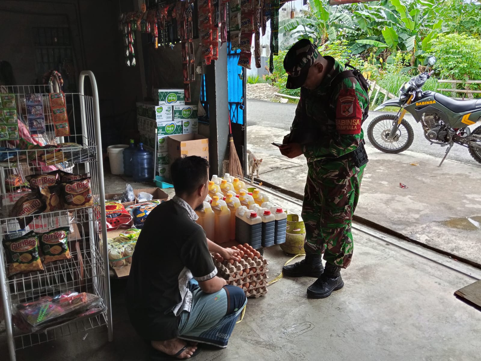Tolitoli — Anggota Koramil 1305-10/Dampal Selatan, Praka Rahmad, melaksanakan kegiatan pengecekan harga kebutuhan pokok (sembako) di kios milik Bapak Ikbal, bertempat di Desa Soni, Kecamatan Dampal Selatan, Kabupaten Toli-Toli. Sabtu, 07/2/26.