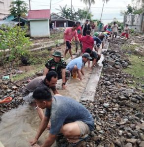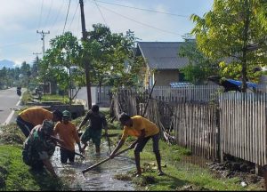 Rawat Fasilitas Umum, Babinsa Bersama Warga Bersihkan Dreinase Jalan Trans Sulawesi