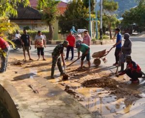 Babinsa Koramil 01/Baolan Kerja Bakti Bersihkan Jalan Wr. Supratman