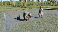 Bantu Pemerintah, Babinsa Koramil 1305-09/Bokat Ikut Petani Tanam Padi