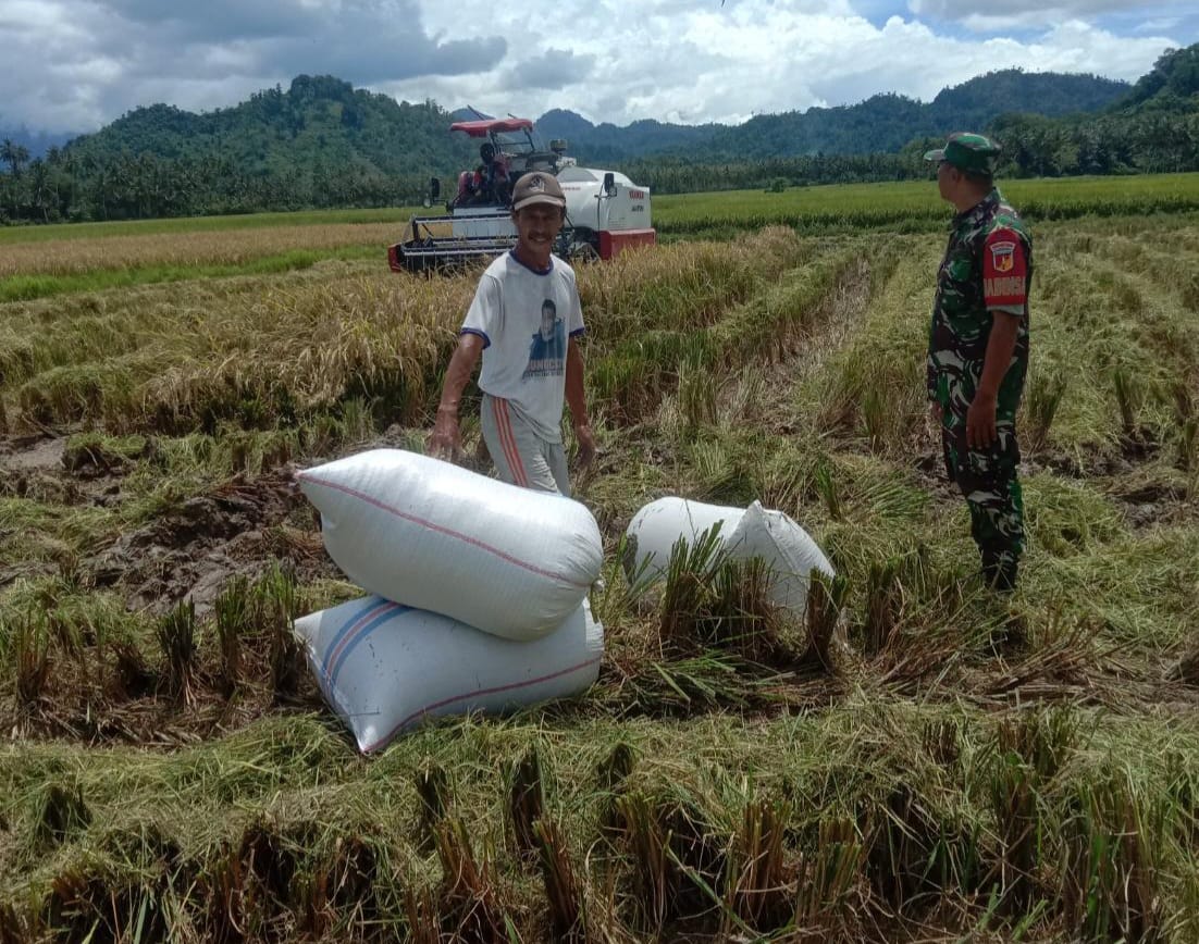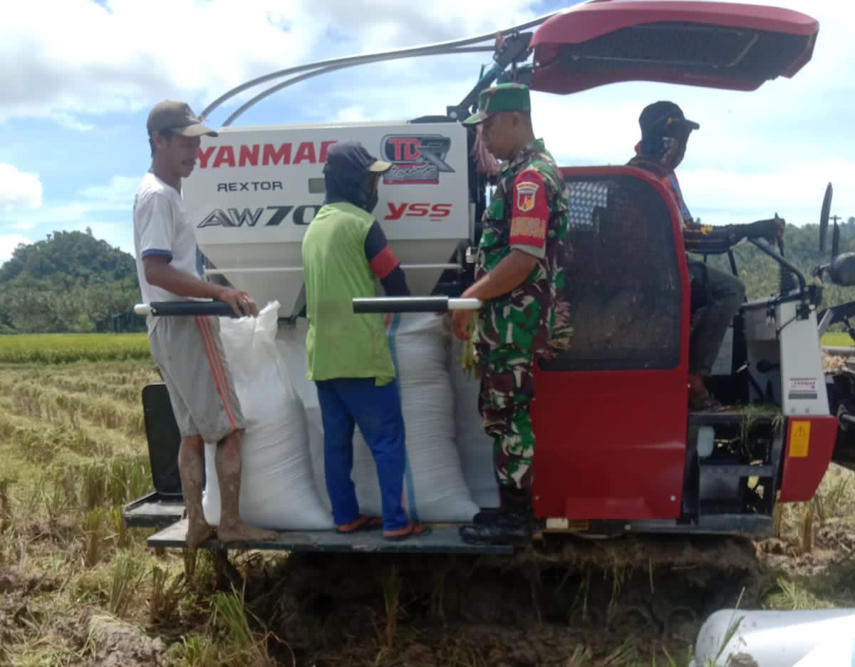 Kodim1305/BT, Sulteng | Kabartoday.id – Babinsa Koramil 1305- 03/Dampal Utara Serda Larahim melaksanakan pendampingan upaya khusus panen padi milik bapak Rustam dengan menggunakan alat modern mesin combain, Desa Stadong Kecamatan Dampal Utara Kabupaten Tolitoli, Senin (31/10/2022).
