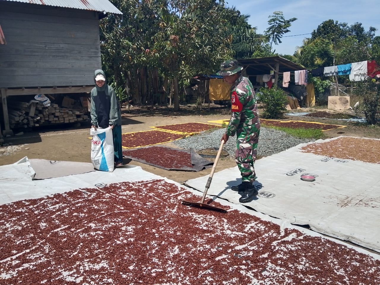 Babinsa Koramil 02 Tolut Bantu Warga Menjemur Hasil Panen Cengkeh