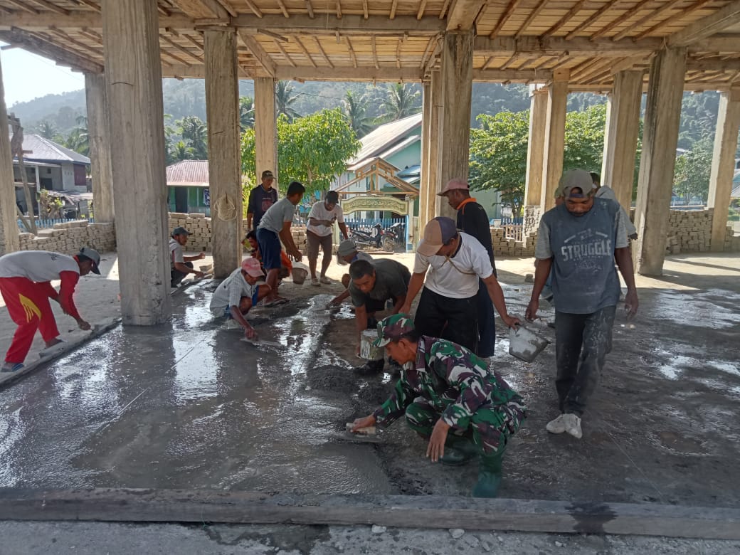 Tolitoli, Sulteng | Kabartoday.id – Guna mempercepat proses pembangunan sarana ibadah, Babinsa Koramil 1305-02/Tolitoli utara Peltu Asdar turun Tangan langsung ikut dalam pelaksanaan Kerja Bakti bersama masyarakat melakukan Pengecoran Lantai Dan Tangga Mesjid At -Taqwa Desa Pinjan Kecamatan Tolitoli Utara, Kabupaten Tolitoli, Sabtu (02/09/2023).
