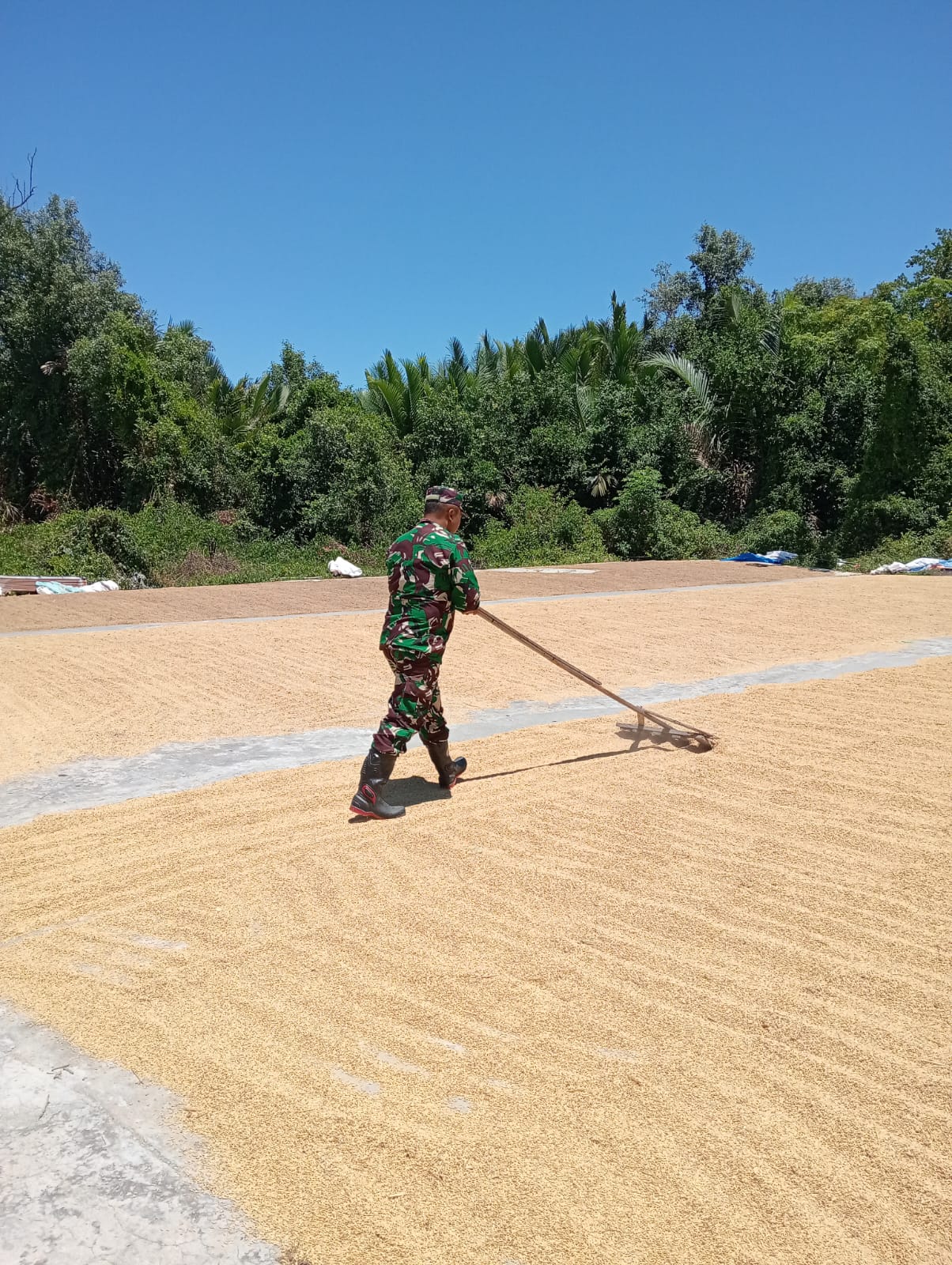 Babinsa Koramil 1305-02/Tolitoli Utara Turun ke Sawah Bantu Petani Jemur Padi
