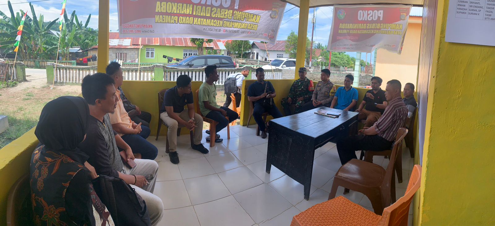 Kegiatan ini di hadiri oleh Kasat Narkoba, Iptu Hasanuddin Hamid, SH, Camat Dako Pemean, Arham A. Jacub, SH, Kapus Dako Pemean, Muhammad Faizal, SKM, Ketua PPK Dako Pemean, Muslimin, Ipda Ewaldo Tasmi, Aiptu Ch. Kampong, Aiptu frangki, Bripka Pahrul, Brigpol Zulkifli, Briptu Asri Wahyudin, Briptu Musdalifah, Babinsa Galumpang, Serda Abd. Gafur, dan Bhabinkamtibmas Desa Galumpang, Briptu Hernawan. ***