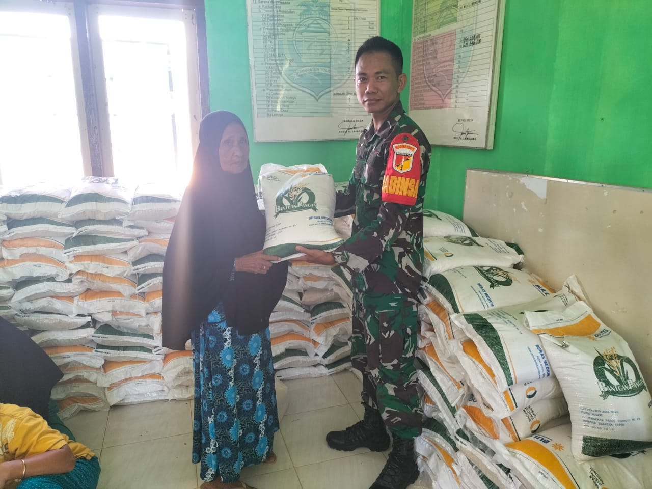 Kodim1305/BT, Sulteng | Kabartoday.id – Dalam rangka mendukung program penyaluran Cadangan Beras Pemerintah untuk Bantuan Pangan 2023, Perum Bulog melalui Pemerintah Desa melakukan penyaluran bantuan Pangan Beras 10 Kg per kepala keluarga, dan kegiatan ini dilaksanakan di Kantor Desa Kamalu Kecamatan Ogodeide, Kabupaten Tolitoli, Senin (10/07/2023).