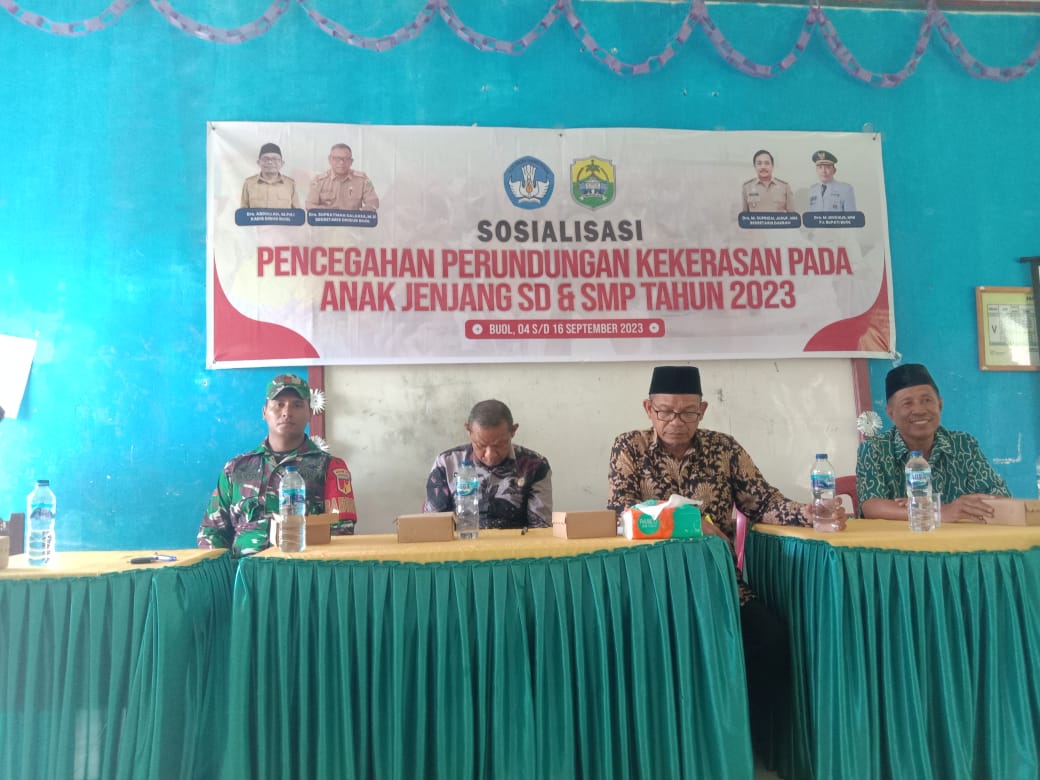 Buol, Sulteng | Kabartoday.id – Babinsa Pratu Elianton Koramil 1305-06/Paleleh, Mewakili Danramil 1305-06/Paleleh Menghadiri Kegiatan Sosialisasi Pencegahan Kekerasan Terhadap Anak SD dan SMP yang dilaksanakan di SDN 6 paleleh barat Kecamatan, Paleleh Barat, Kabupaten Buol, Kamis (07/09/0/2023).