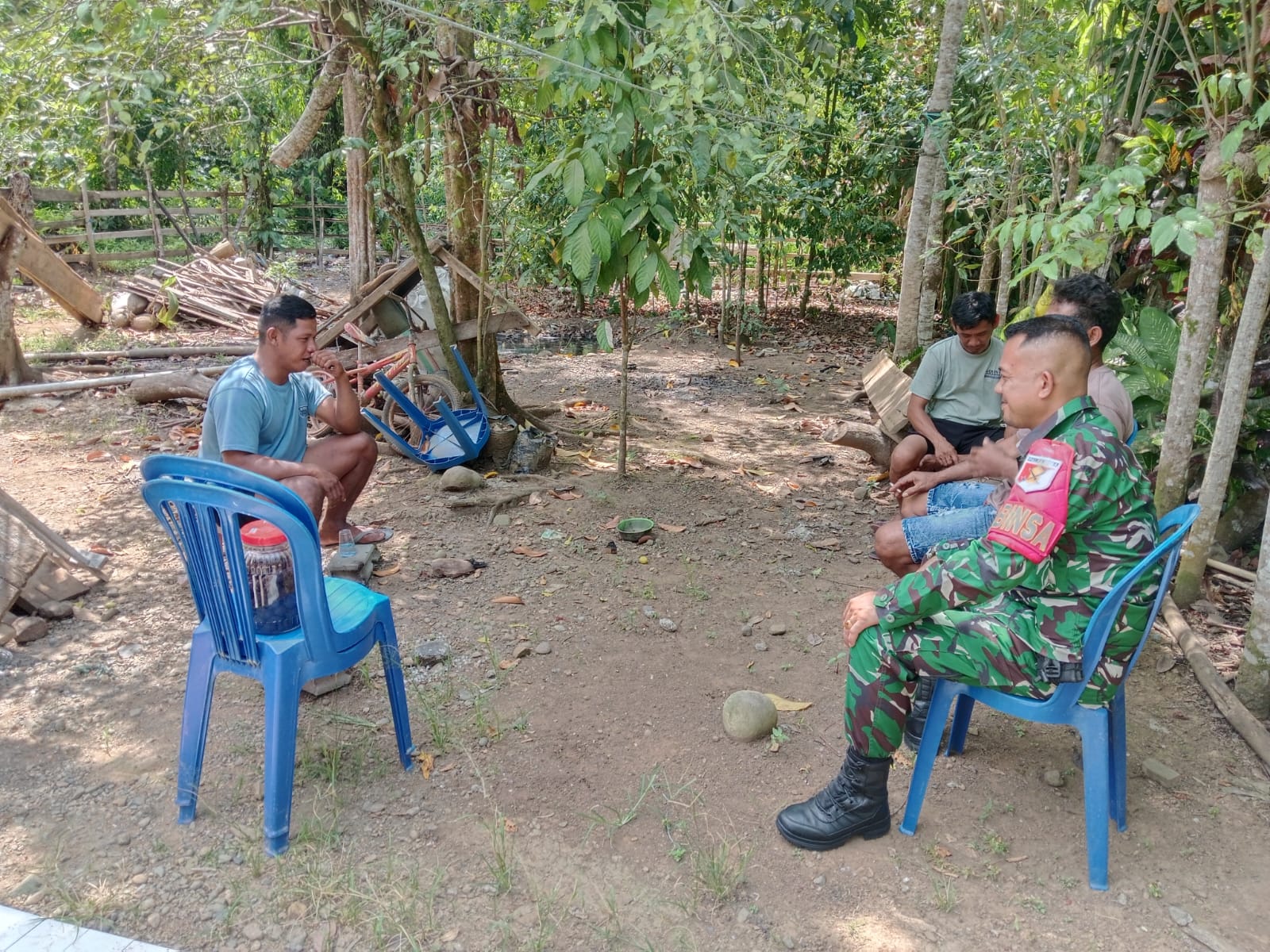 Buol – Anggota Koramil 1305-06/Paleleh kembali melaksanakan kegiatan komunikasi sosial (komsos) sebagai bagian dari pembinaan teritorial di wilayah binaan. Kegiatan tersebut dilaksanakan oleh Babinsa, Kopda Hanri Putra Masrawi, bertempat di rumah Bapak Budi yang berlokasi di Desa Talaki, Kecamatan Paleleh. Rabu, 22/04/26.