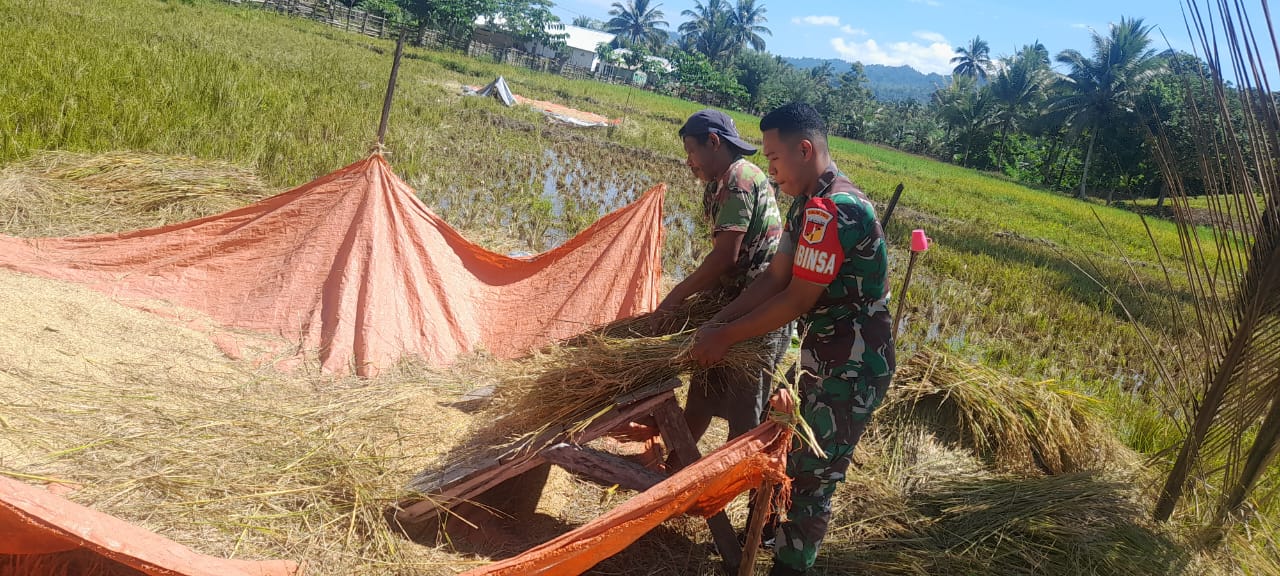 Babinsa Koramil 1305-08/Momunu Bantu Petani Rontokkan Padi Secara Manual