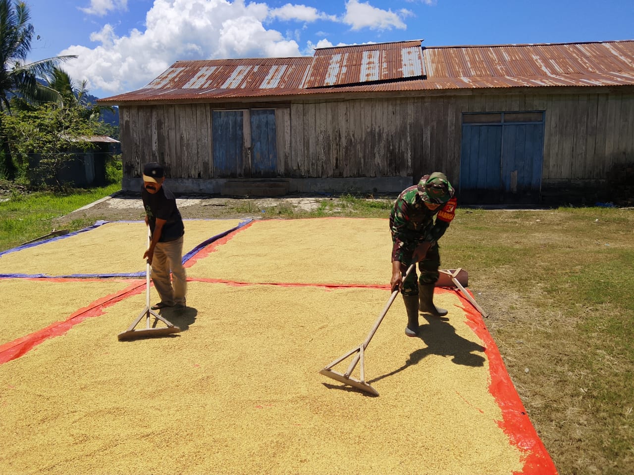 Babinsa Koramil 1305-08/Momunu Kopda Irwansah Bantu Petani Jemur Padi