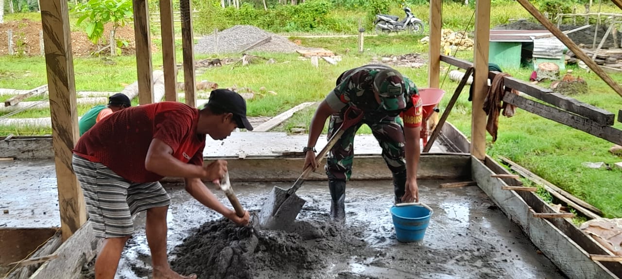 Koptu Amir Salim menambahkan pembangunan pengecoran Slop lanjutan rumah milik bapak Sukiman ini menjadi bukti nyata bahwa Babinsa ada selalu buat warga binaan.