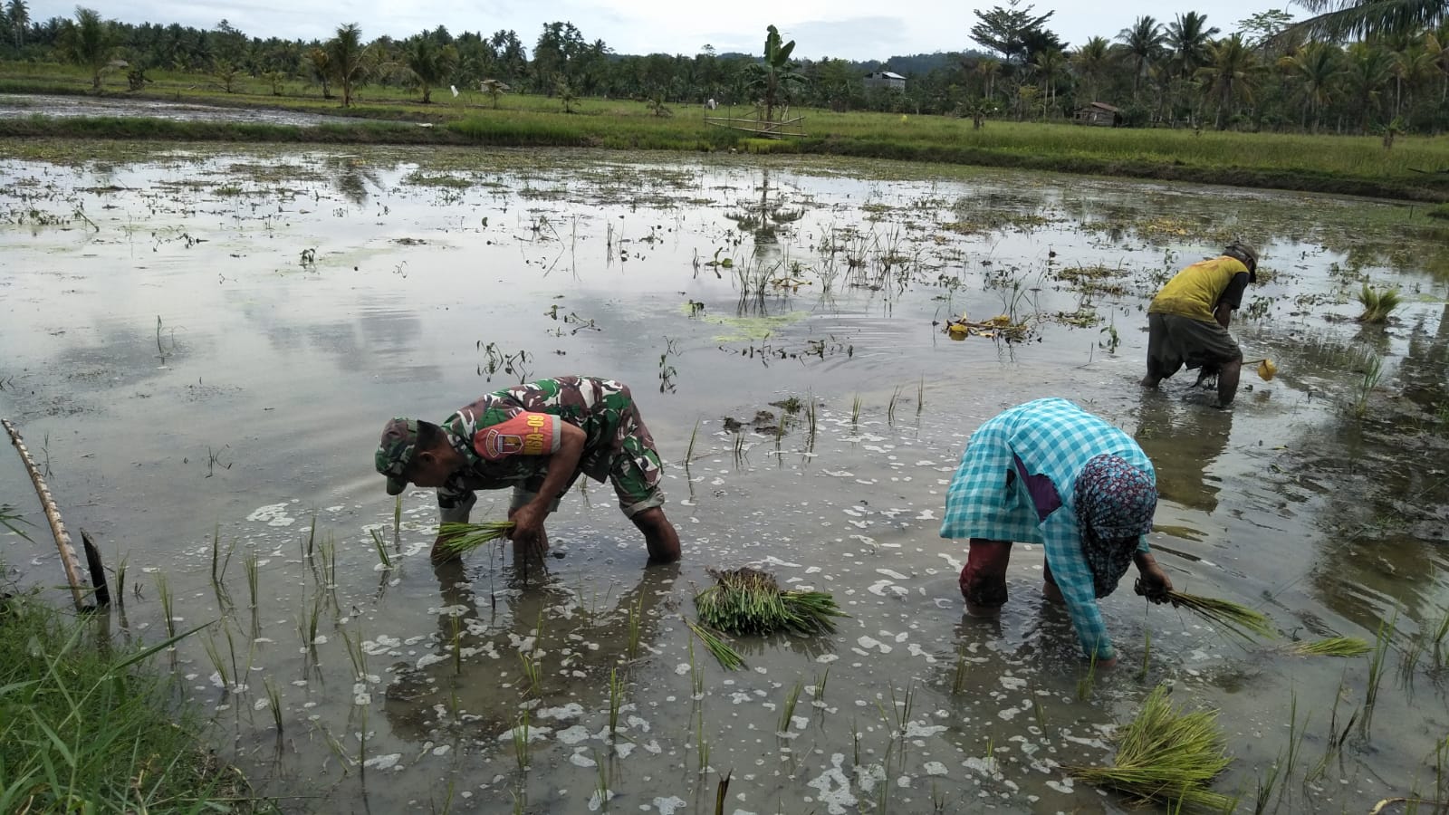 Pendampingan yang dilakukan Babinsa Serka Jufri Dj. Madukala kepada petani untuk membantu menanam padi jenis varietas lombi-lombi di sawah seluas 0,5 Ha milik Bapak Nasir warga Desa Diat Kecamatan Bukal, Kabupaten Buol.
