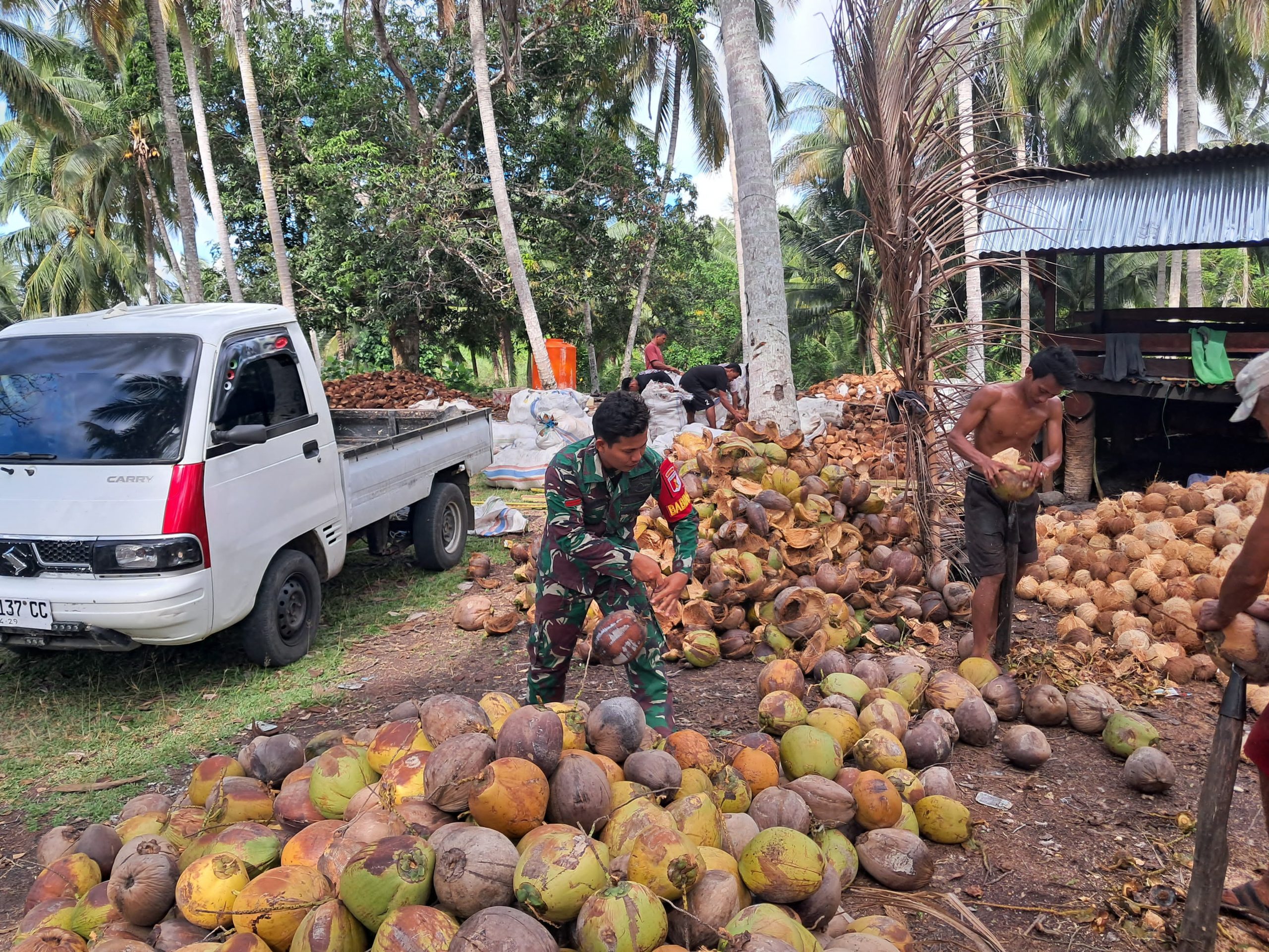 Babinsa Koramil 1305-09/Bokat Warga Lakukan Pengolahan Kelapa