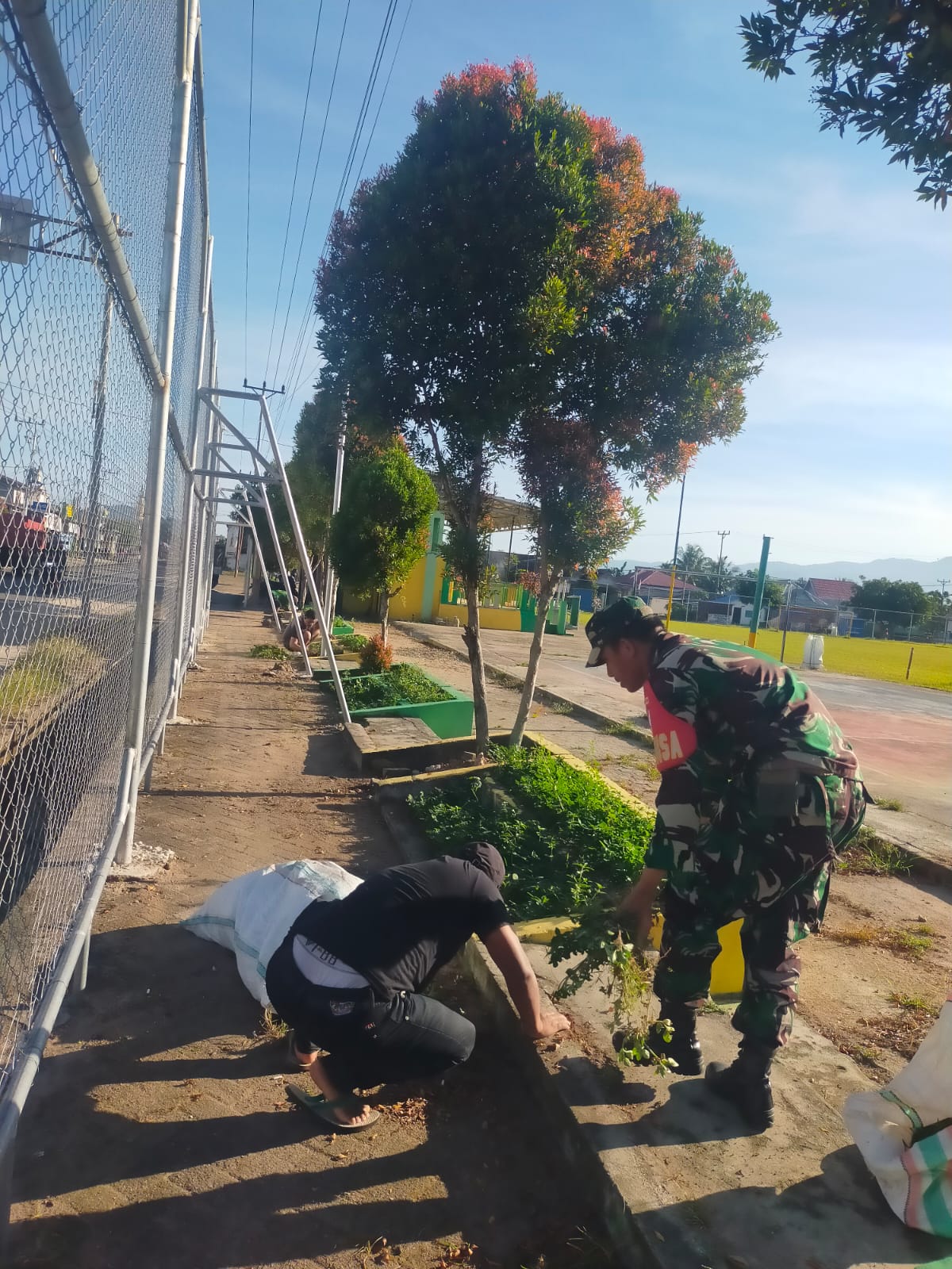 Tolitoli — Kepedulian terhadap kebersihan lingkungan terus ditunjukkan oleh aparat kewilayahan bersama masyarakat. Babinsa Desa Sandana Koramil 1305-11/Galang, Sertu Dedi, melaksanakan kegiatan pembinaan teritorial (Binter) melalui kerja bakti pembersihan di seputaran Lapangan Lakita, Dusun Cendana, Desa Sandana, Kabupaten Tolitoli. Sabtu, 18/04/26.