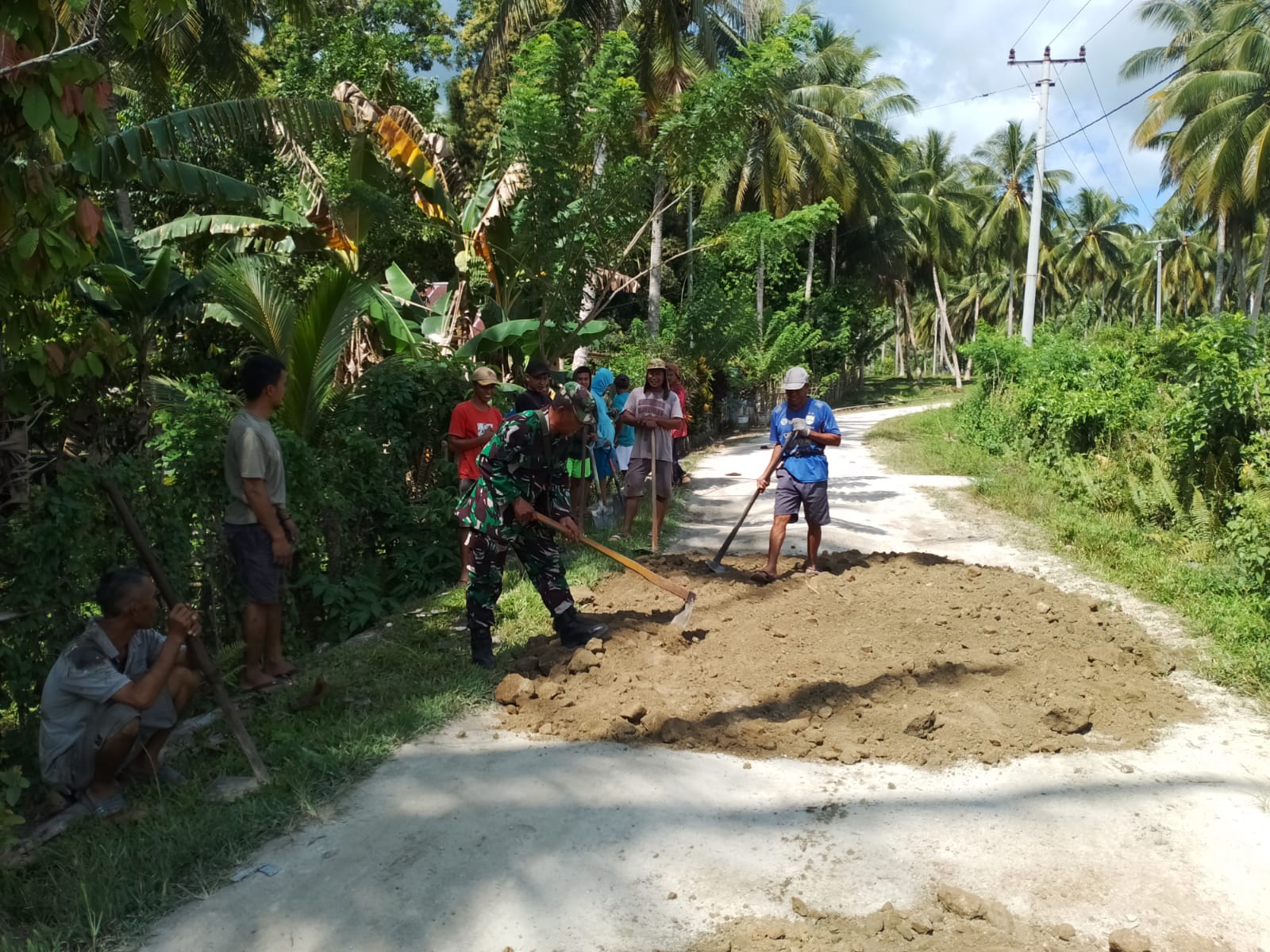Kodim1305/BT, Sulteng | Kabartoday.id – Dalam upaya mengatasi kesulitan warga desa binaannya, Babinsa Ogolali wilayah Koramil 1305-03/ Dampal Utara Serma Hamzah turun langsung untuk membantu masyarakat petani dalam melakukan penimbunan jalan kantong produksi sepanjang 50 KM di Desa Ogolali, Kecamatan Dampal Utara, Kabupaten Tolitoli.