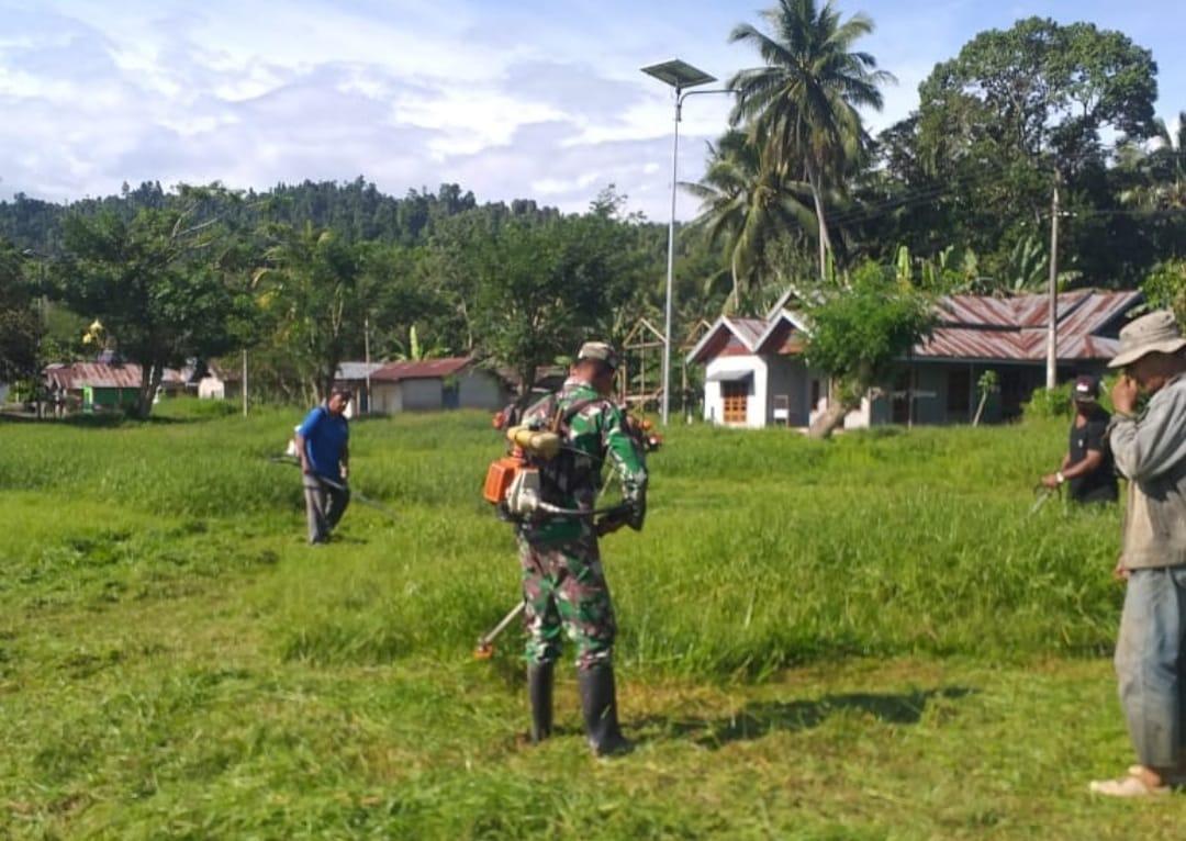 Melihat lapangan sepak bola yang rumputnya mulai tinggi, Babinsa Koramil 1305-04/Dondo Serda Endri Susanto memimpin masyarakat Desa Sibaluton Kecamatan Basidondo Kabupaten Tolitoli melaksanakan kerja bakti dengan sasaran pembersihan Lapangan Sepakbola, Jumat (20/05/2022).