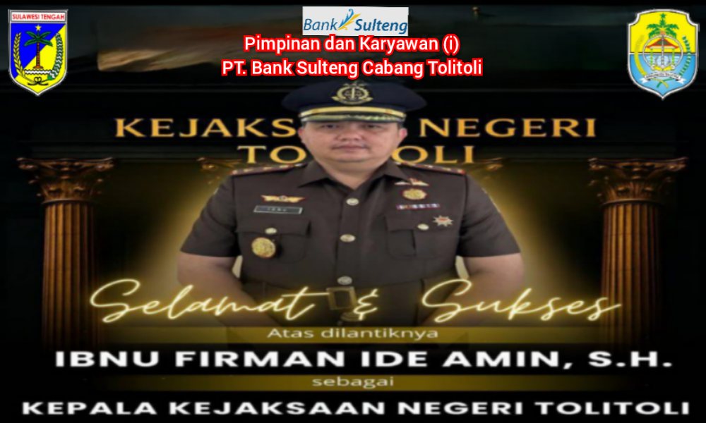 Bank Sulteng Tolitoli : Selamat dan Sukses Atas Pelantikan Kajari Tolitoli