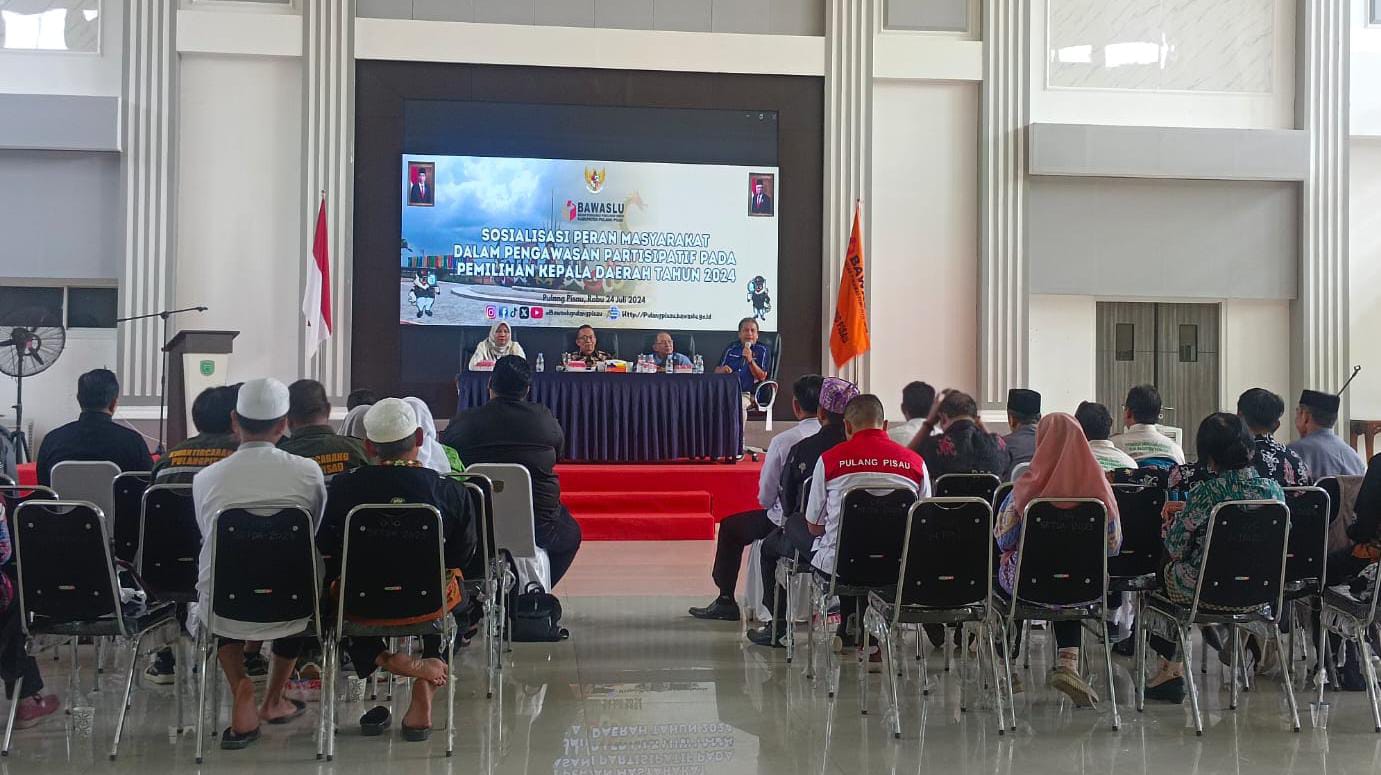 Itu disampaikan Ketua Badan Pengawas Pemilu (Bawaslu) Kabupaten Pulang Pisau, Zahrotul Mufidah saat menggelar kegiatan Sosialisasi Peran Masyarakat dalam Pengawasan Partisipatif di Aula Banama Tingang Kantor Bupati Pulang Pisau, Rabu (24/07/2024).
