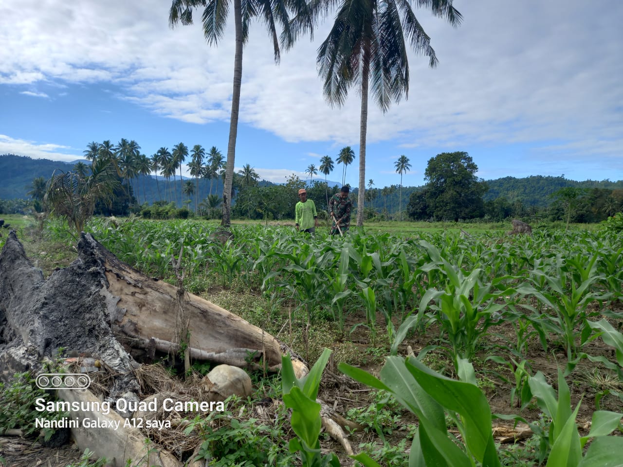 Bentuk Kepedulian Kepada Petani, Babinsa Koramil 1305-02/Tolitoli Utara Peltu Sofian Bantu Bersihkan Tanaman Jagung