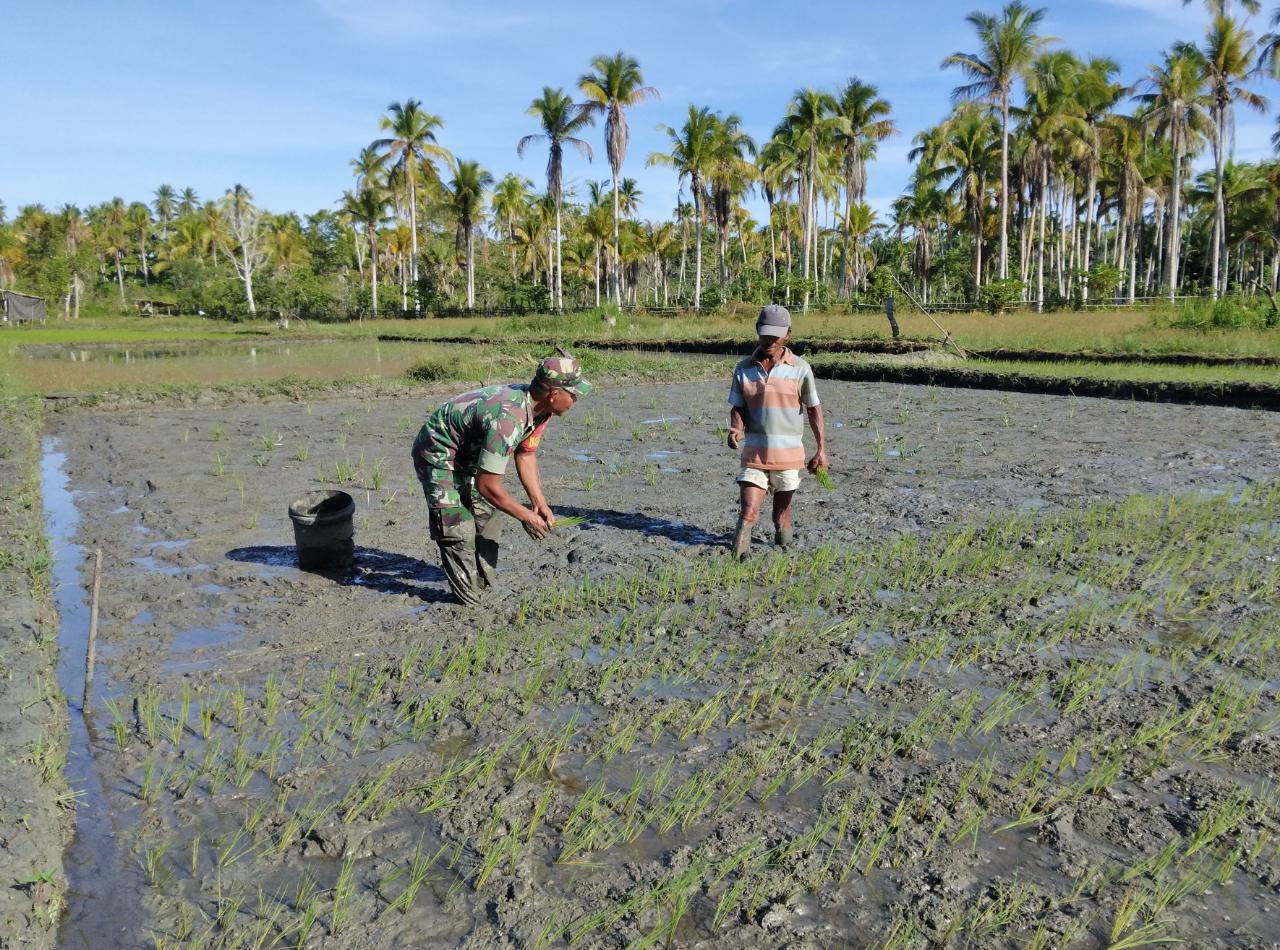 Lanjut Koptu A. Tampilang menambahkan kegiatan tanam padi yang sedang dikerjakan saat ini merupakan wujud kemanunggalan TNI bersama Rakyat. Dan kehadiran TNI ditengah tengah masyakarat hanya ingin menjalin komunikasi Sosial (Komsos) serta ingin selalu membantu meningkatkan perekonomian masyakarat.