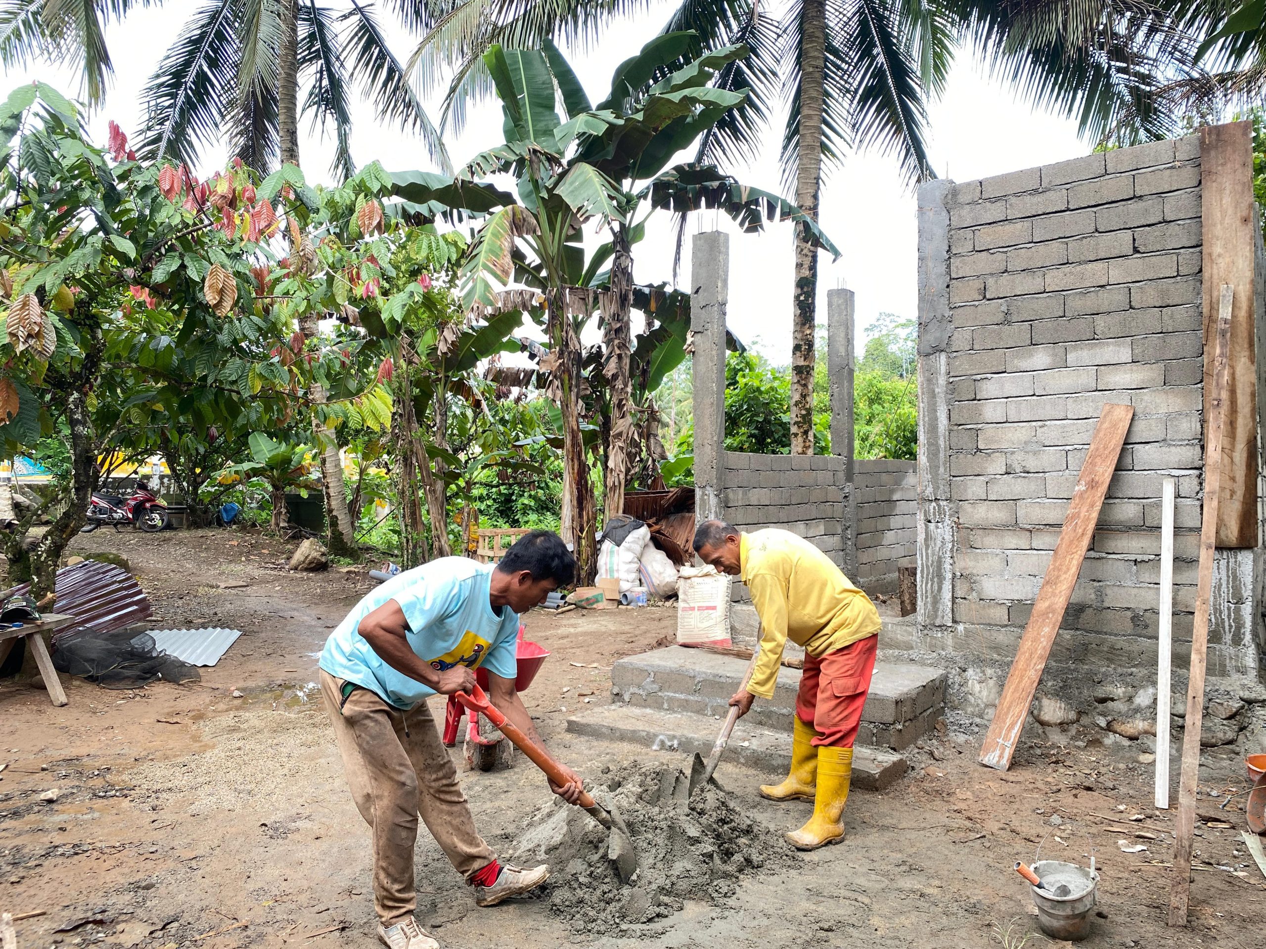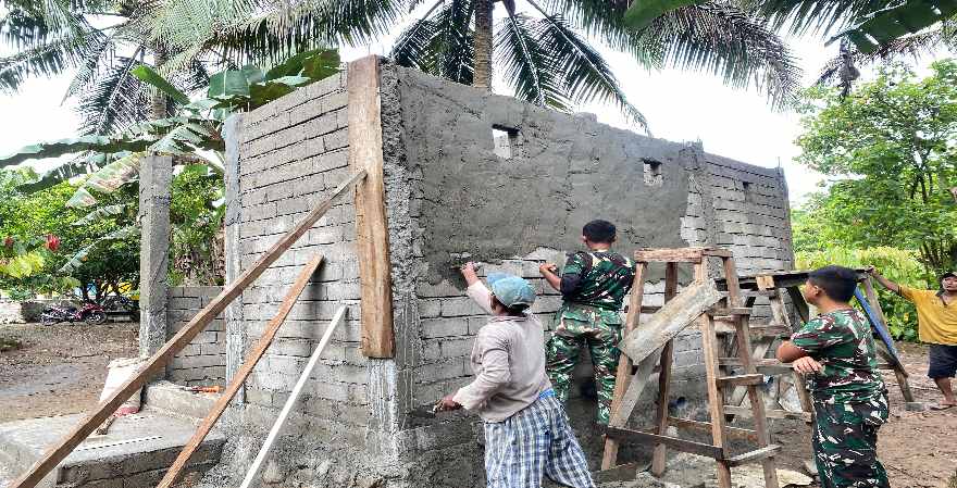 Sejak pagi hari, personel Satgas TMMD bersama masyarakat setempat bahu-membahu melaksanakan proses pembangunan, mulai dari penggalian pondasi, pemasangan batako, hingga persiapan instalasi saluran air.