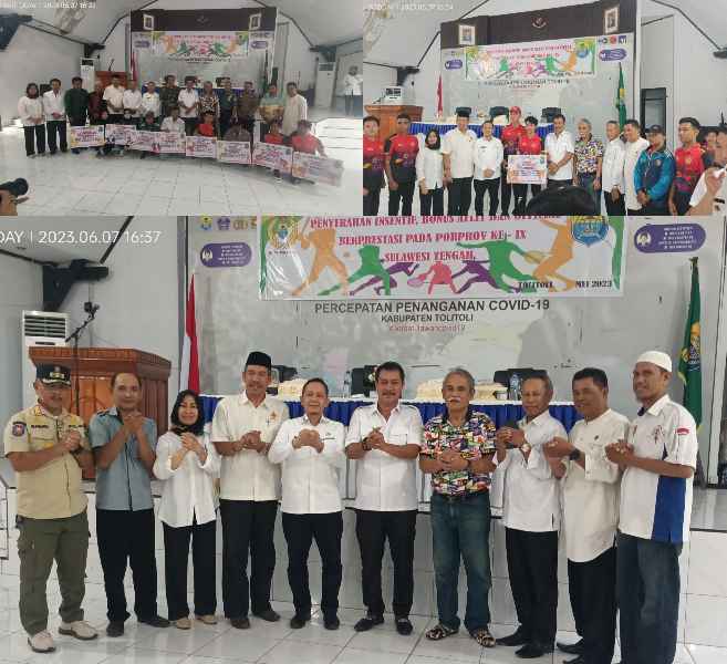 Penyerahan Bonus intensif bagi Atlit dan Official peraih medali emas, Perak, dan perunggu oleh Komite Olahraga Nasional Indonesia (KONI) Kabupaten Tolitoli bertempat di Aula Kediaman Bupati, Rabu, (07/06/2023) sore.