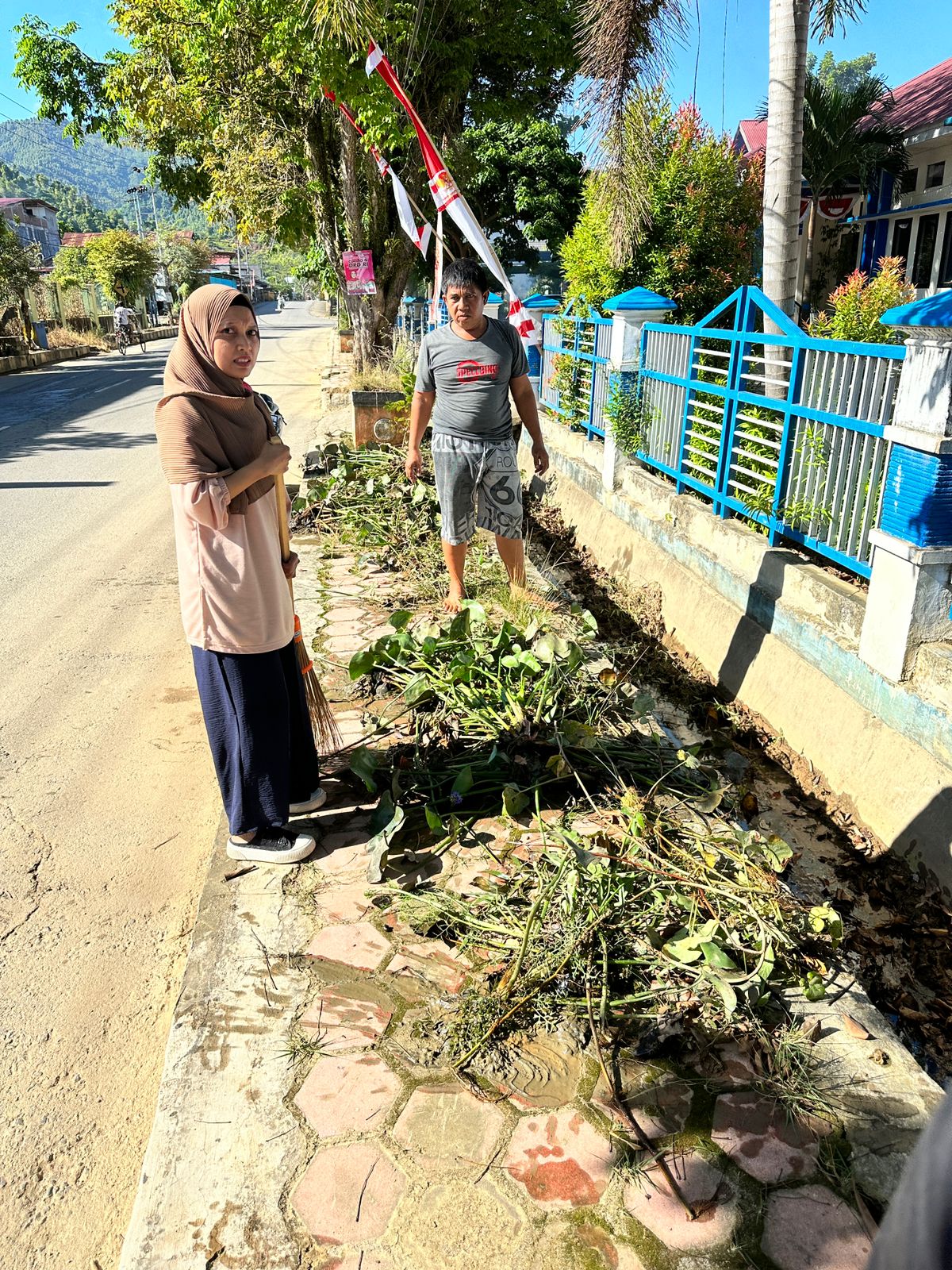 Dari pantauan media di lapangan Camat Baolan Andi Irmayanti Azis juga turun langsung memantau dan membantu dalam giat jumat bersih ini.