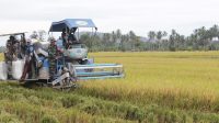 Babinsa Koramil 11 Galang, Dampingi Petani Panen Padi Gunakan Alsintan