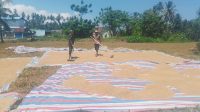 Jaga Ketahanan Pangan, Babinsa Koramil 10 Damsel Serda Herman Bantu Petani Jemur Padi