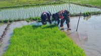 Terjun Ke Sawah Ikut Tanam Padi, Babinsa Koramil 08 Momunu Dukung Program Hanpangan Ketahanan Pangan