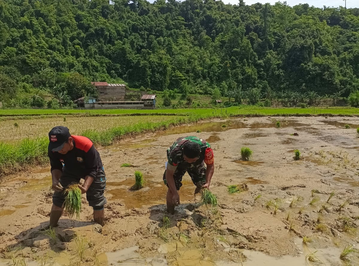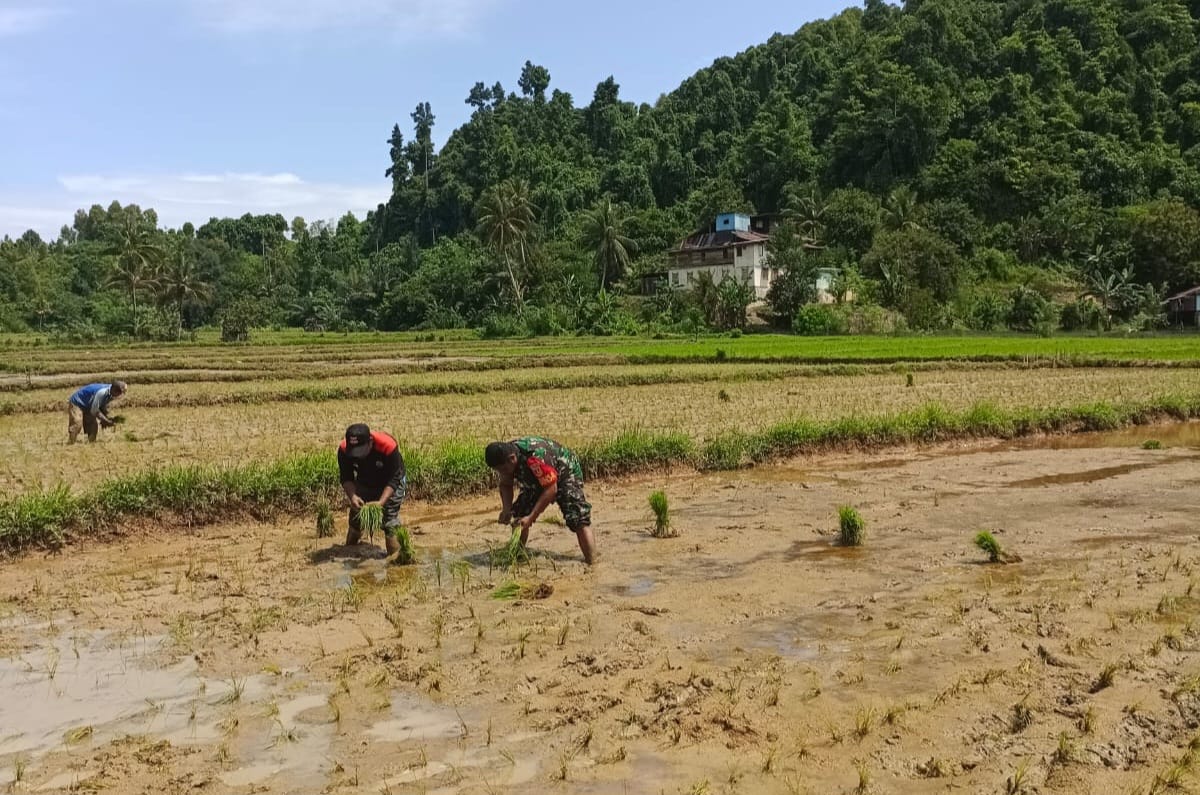 Tolitoli, Sulteng | Kabartoday.id – Dalam mendukung program pemerintah bidang ketahanan pangan, khususnya swasembada pangan, Babinsa Pulias wilayah Koramil 1305-04/Dondo Koptu Diman melaksanakan pendampingan Ketahanan Pangan dalam menanam padi.