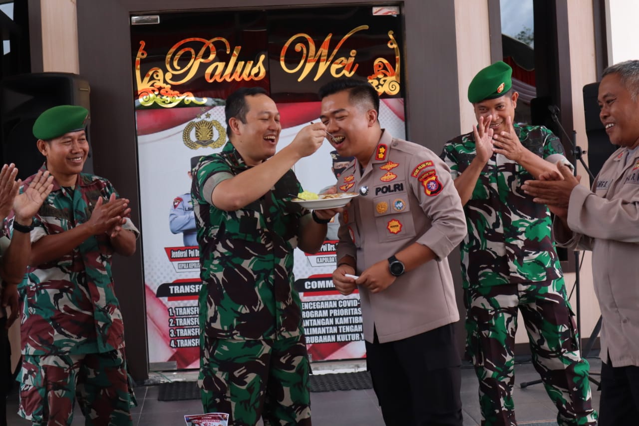 SUYANTO | PULANG PISAU | KALTENG – Dandim 1011/Kuala Kapuas, Letkol Kav Ferdiansyah, S.Sos memberikan kejutan kepada Kapolres Pulang Pisau AKBP Kurniawan Hartono, S.I.K dalam rangka memperingati HUT Bhayangkara ke – 76, Jum’at (01/07/2022) siang.