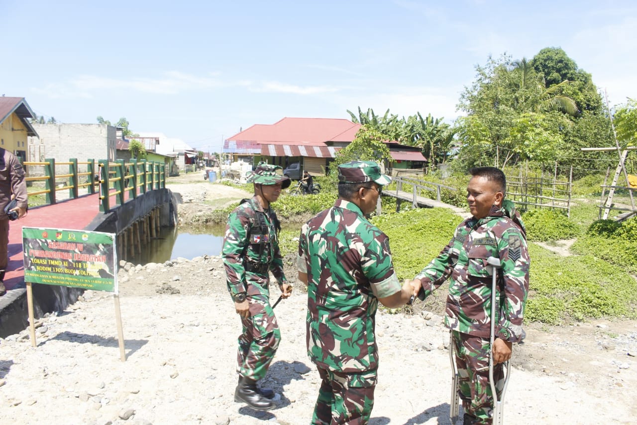 “Saya sangat bangga dengan seluruh prajurit TNI AD Kodim 1305/BT yang sudah menyukseskan program TMMD 118 ini, terlebih lagi kepada Serma Kalele, walaupun sedang sakit dan berjalan mengunakan Tongkat tetap aktif dalam menjalankan tanggung jawabnya di lapangan,” Katanya.