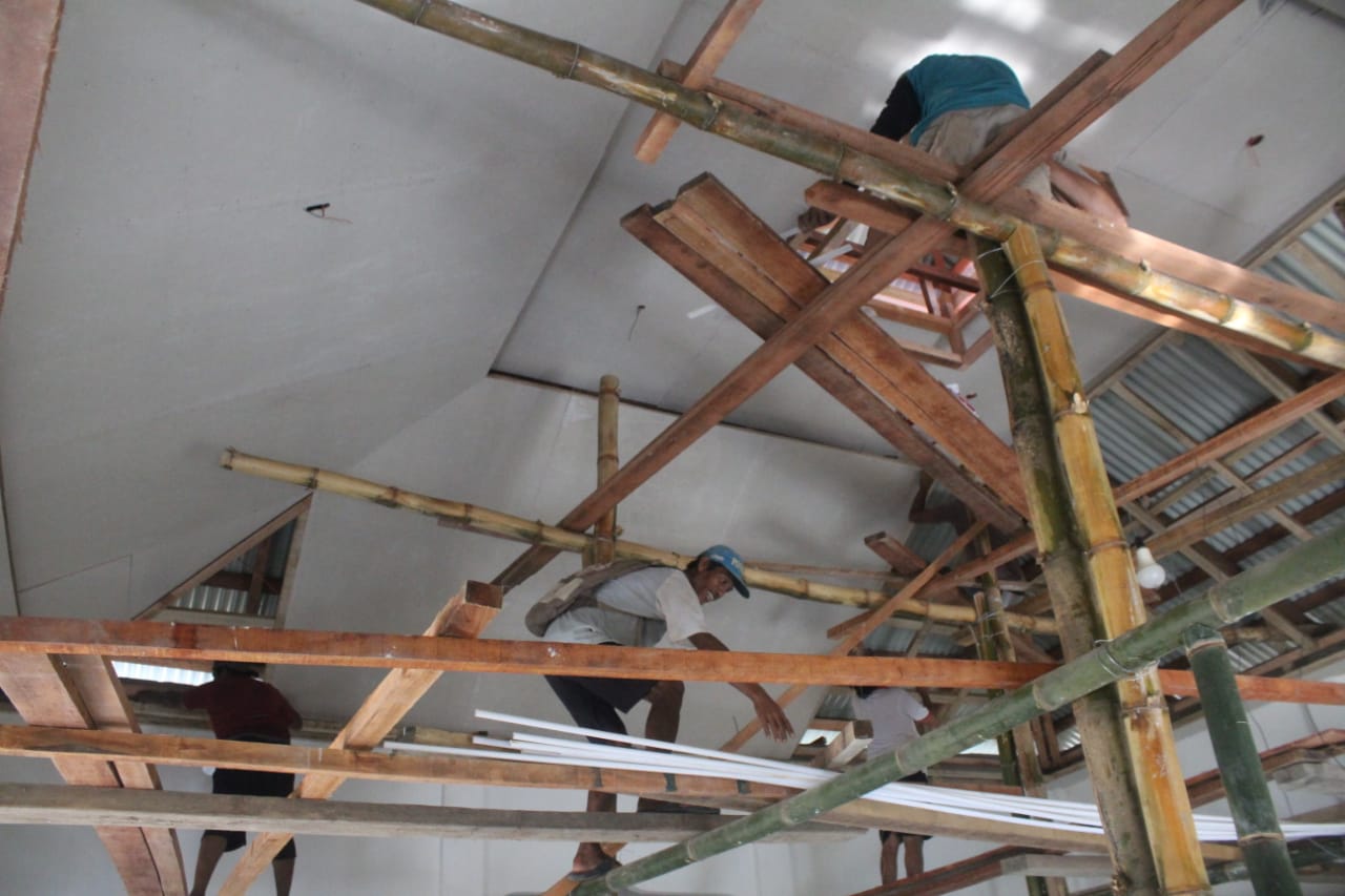 Selain itu, saat ini pemasangan plafon bangunan utama Mushola sudah dikerjakan dan insyallah kita doakan bersama sama pemasangan plafon bisa selesai hari ini,” Kata Letkol Inf Dedi Akhiruddin.