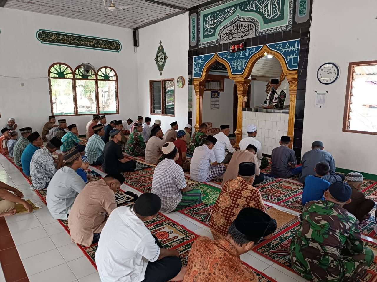 Dandim 1305/BT Yang juga sebagai Dansatgas TMMD Kolonel Inf Dedi Akhiruddin S.A.P menghimbau kepada seluruh personel Satgas TMMD yang beragama muslim untuk mengelar sholat Jumat berjamaah di mesjid.