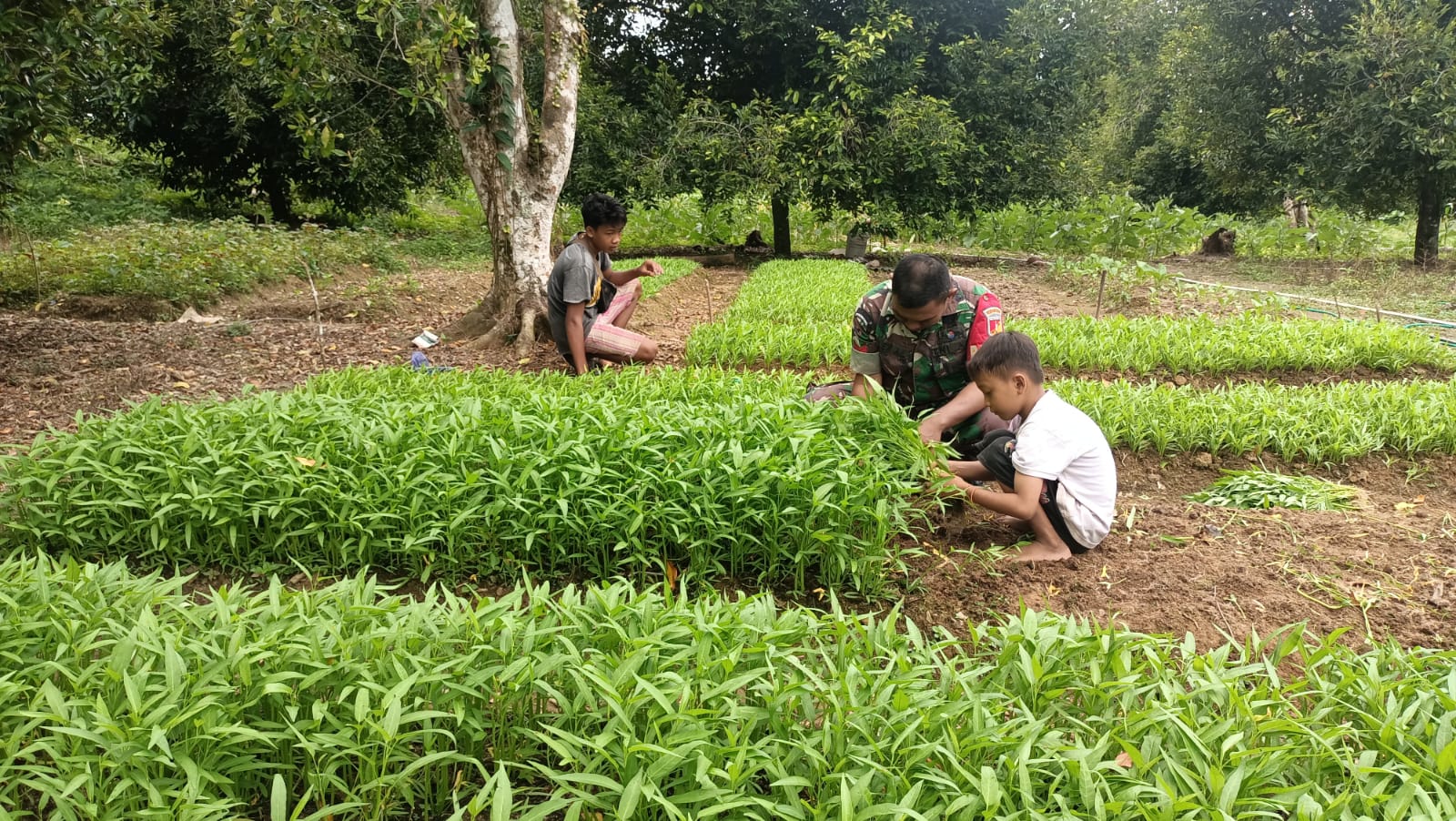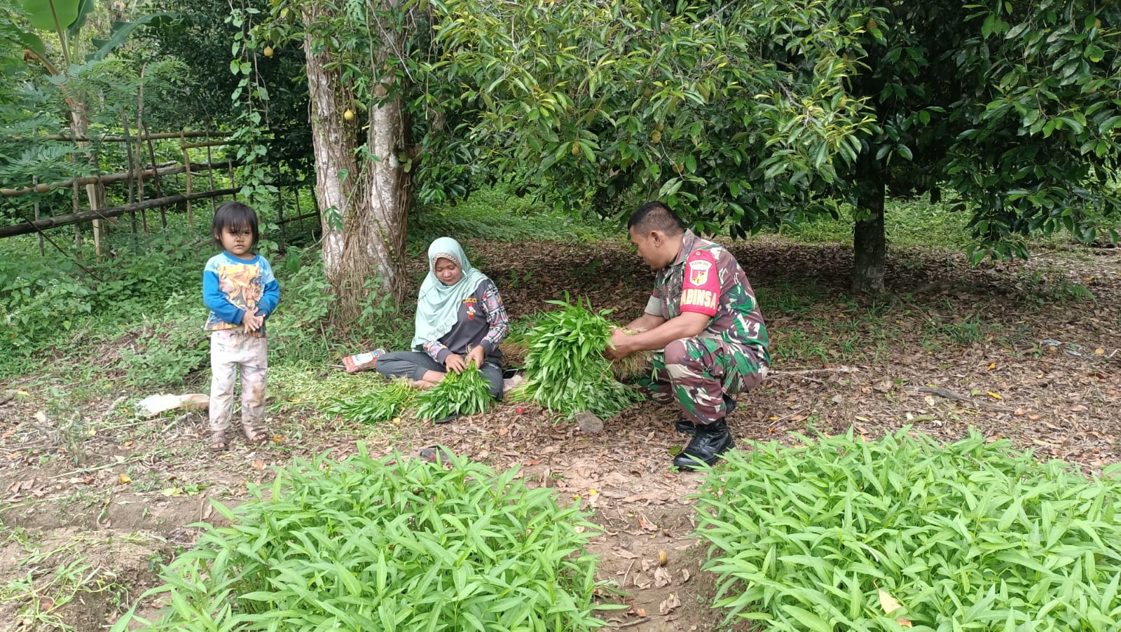 Kodim1305/BT, Sulteng | Kabartoday.id -Babinsa Koramil 1305-05/Biau melaksanakan Komsos pengen sayur jenis Kangkung cabut di desa Mendaan Kecamatan Karamat, kabupaten Buol. Rabu (05/04/2023).