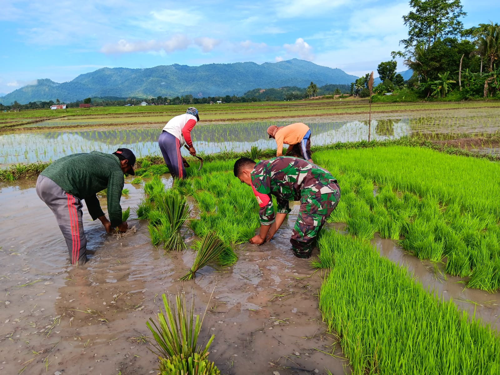 Babinsa Pratu.A Rahman mengatakan bahwa, upaya yang dilakukan Babinsa ini bertujuan untuk memberikan semangat bagi kelompok tani. Di samping itu, juga untuk membantu dan mendorong petani untuk segera melaksanakan percepatan masa tanam.