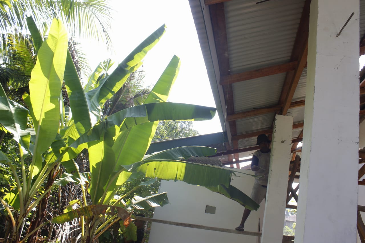Sementara, Satgas TMMD Reguler Ke- 108 Kodim 1305/BT dibantu oleh warga saat melakukan plesteran dan Acian Tiang teras mushola terus di tuntaskan.