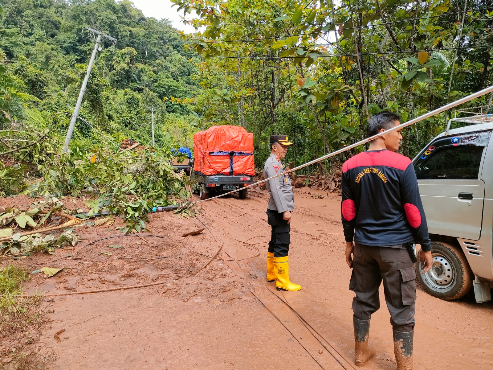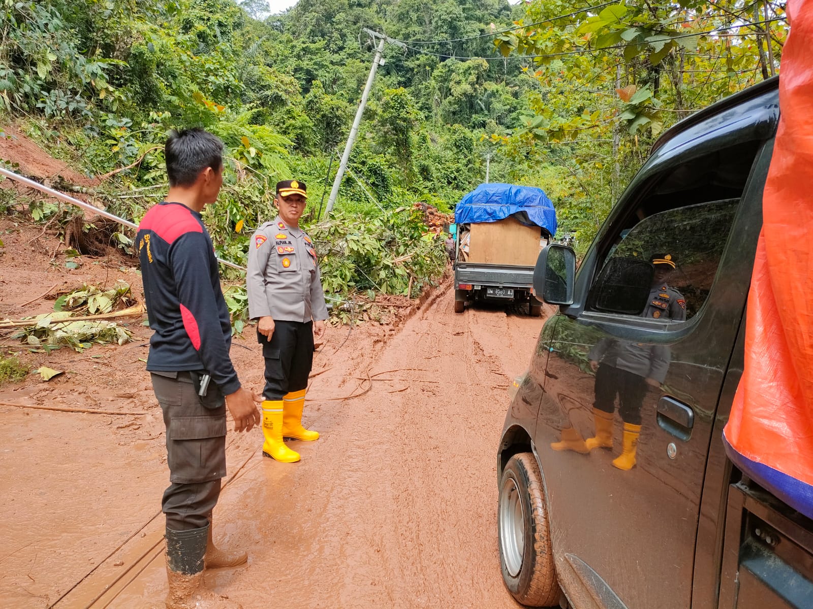 Untuk mengantisipasi dan mengurai antrian yang semakin panjang serta mencegah terjadinya longsor susulan, Polres Morowali Utara yang dipimpin langsung Wakapolres Morowali Utara Kompol Alfian Joan Komaling. S.H., M.Pd. bersama personelnya terjun langsung di lokasi tanah longsor untuk melakukan pengaturan lalu lintas.