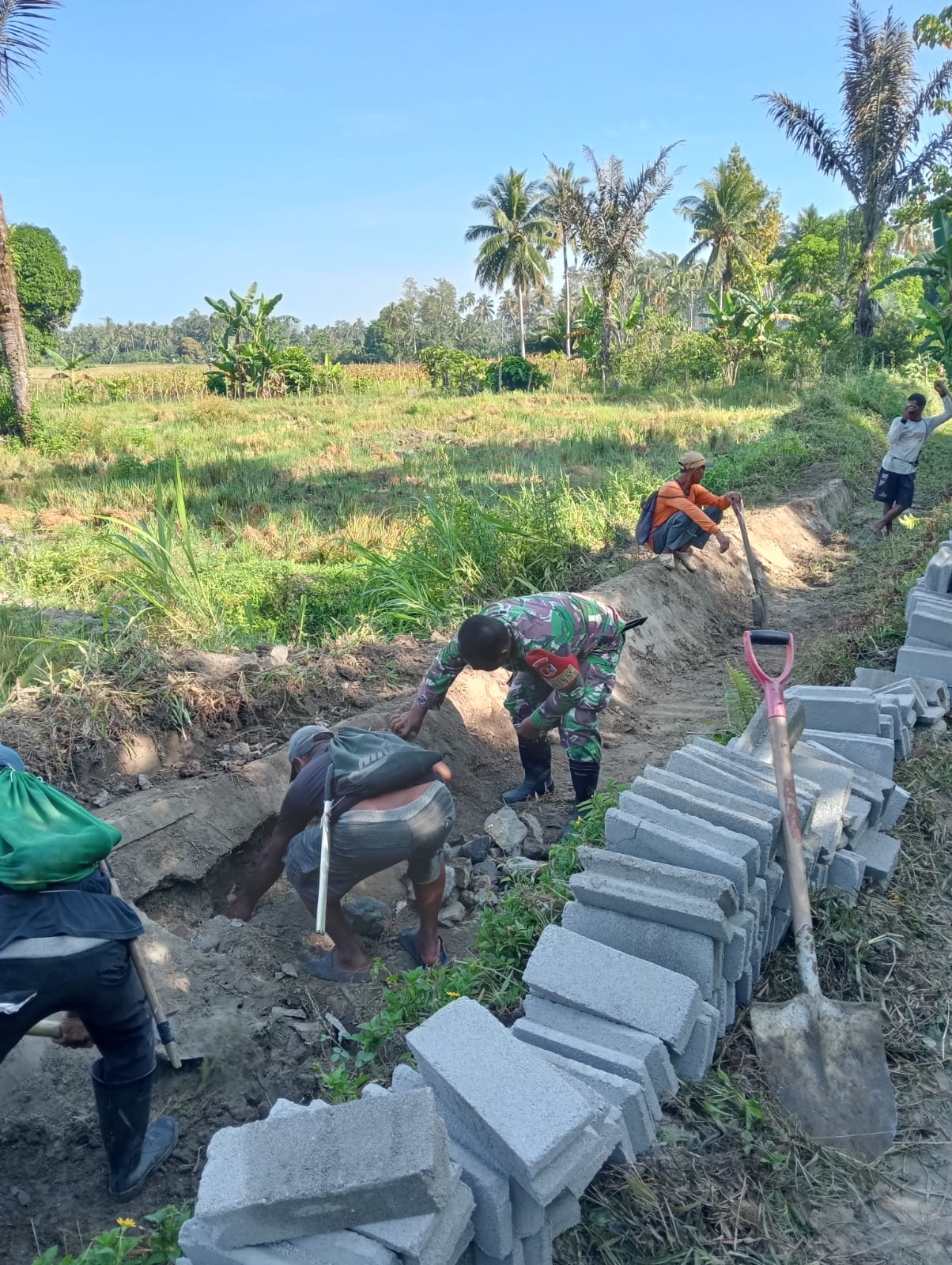 Dorong Peningkatan Produktifitas, Babinsa Galumpang Turun Tangan Benahi Irigasi