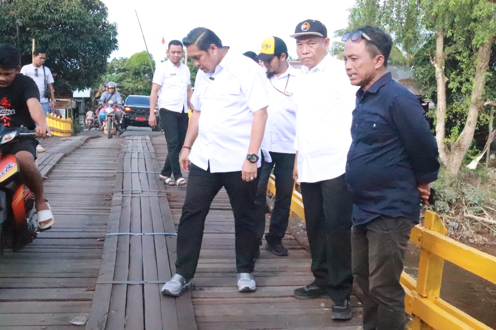 Saat meninjau, Wabup didampingi oleh Plt. Kepala Dinas PUPR Pulang Pisau, Iwan Hermawan, beserta PPTK dan Camat Kahayan Kuala. Mereka meninjau langsung kondisi ruas jalan yang telah diaspal serta jembatan kayu penghubung antar desa yang sedang dalam tahap perbaikan.
