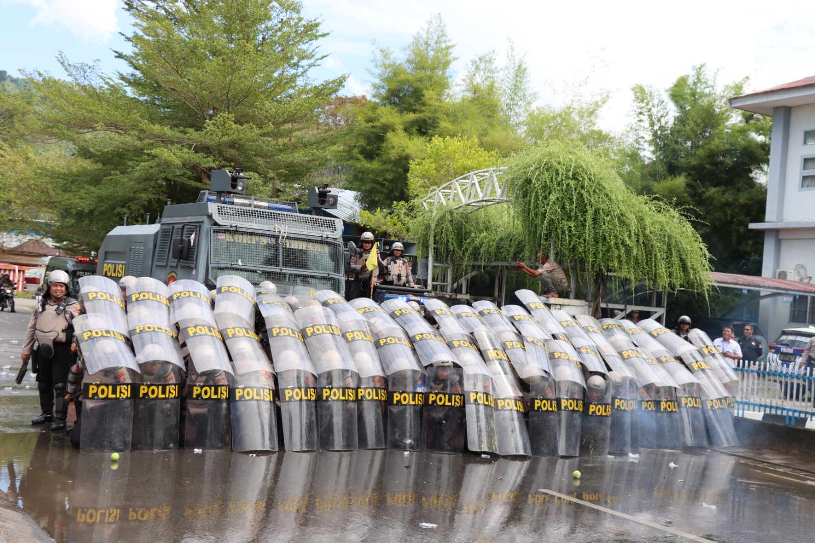 “Saat simulasi, dibuat skenario aksi demonstrasi dengan berbagai kondisi Variasi yang biasanya terjadi dilapangan,” terang Kapolres Tolitoli.