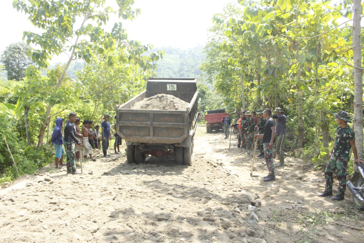 ”Benar-benar jalan ini menguji adrenalin kita saat droping material ke lokasi TMMD, sehingga kami-kami para sopir truk harus bekerja ekstra dan selalu waspada,” ungkap sopir.