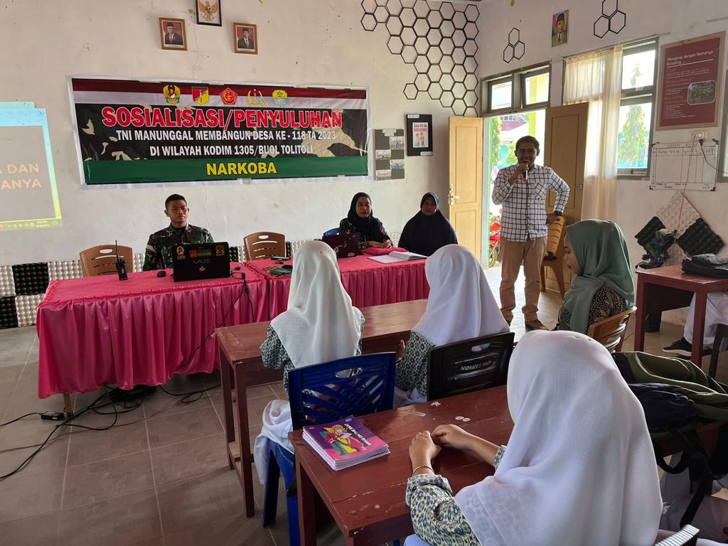 Untuk itu, agar generasi muda tidak terjerumus dalam penyalahgunaan narkotika, Satgas TMMD 118 Kodim 1305/BT mengelar sosialisasi terkait bahaya Narkoba. Sosialisasi tersebut diikuti oleh 30 orang Siswa SMK 1 Dakopemean.