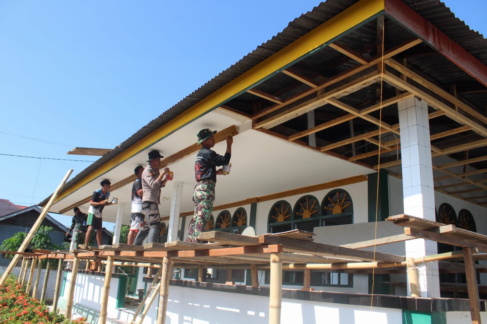 Sejumlah kegiatan di sasaran mesjid yang dilakukan masyarakat dan anggota Satgas TMMD mulai dari plafon di dalam mesjid, pengecetan hingga dibagian luar mesjid terus di di kebut.